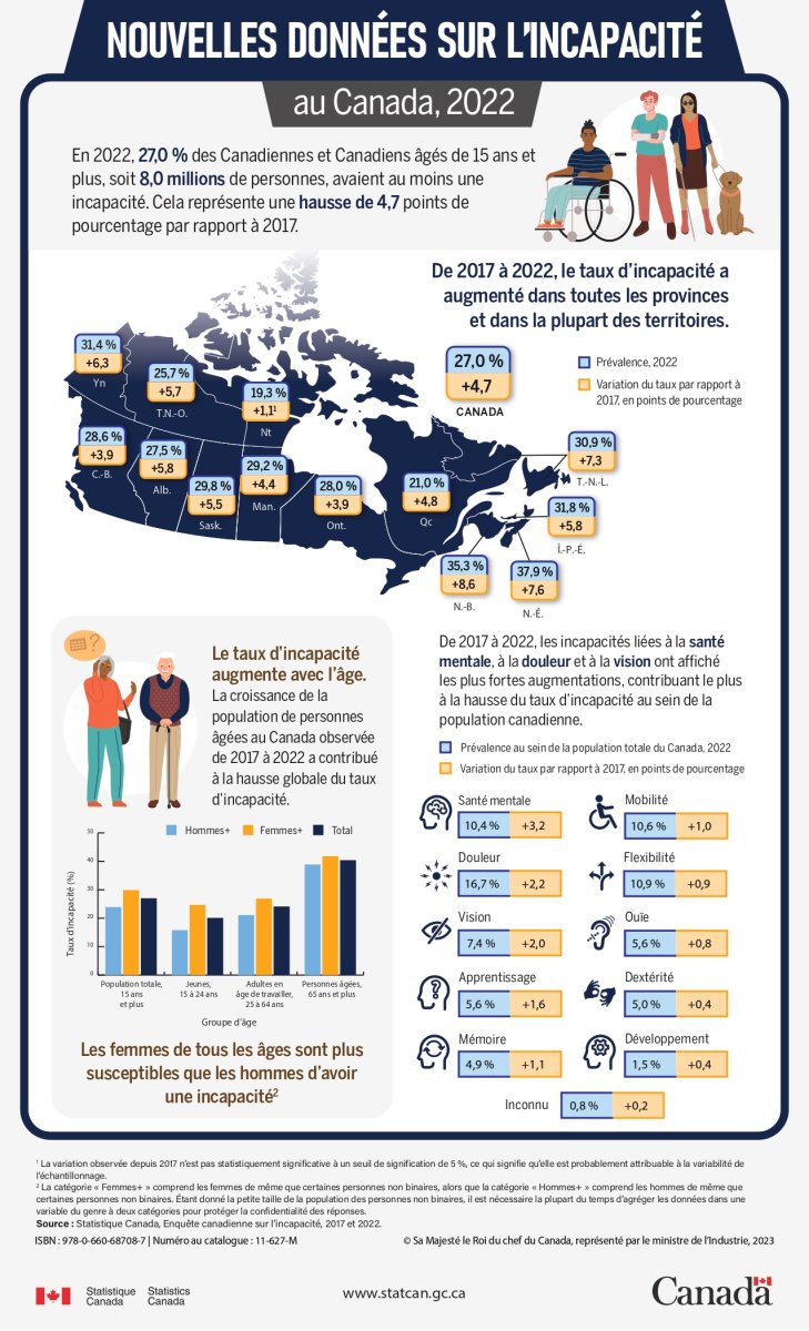 Statistiques officielles sur la population vivant avec une incapacité au Canada, pour informer les décisions et actions inclusives.
